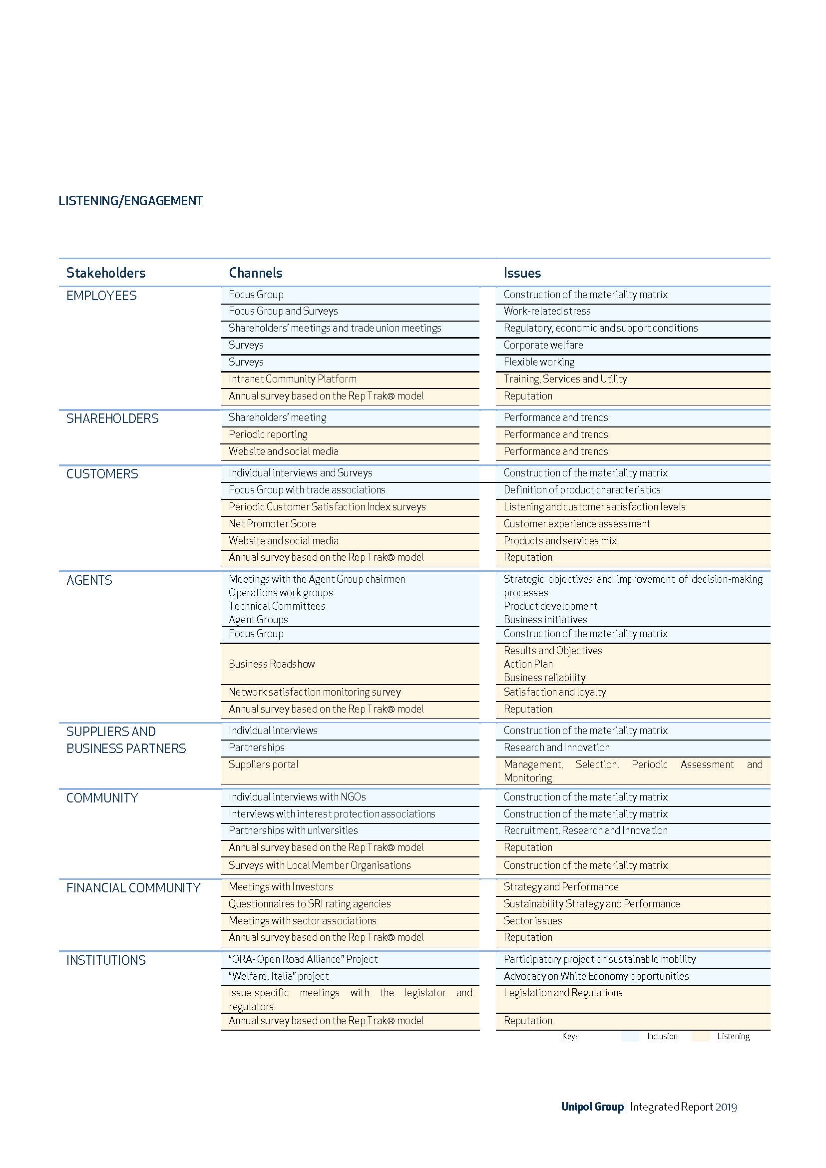 Stakeholder engagement activities include those characterized by an annual and / or continuous periodicity throughout the year and those organized in conjunction with the preparation of the 2019 – 2021 Strategic Plan “Mission: Evolve”, aimed at providing the basis for non-financial reporting over the three-year period of the plan.