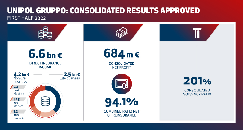 The board of directors of Unipol Gruppo S.p.A., which met yesterday under the chairmanship of Carlo Cimbri, approved the consolidated results as at 30 June 2022.