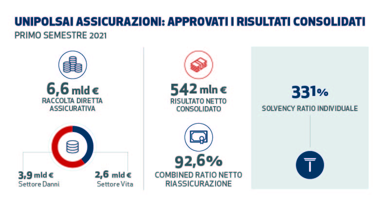 Il Consiglio di Amministrazione di UnipolSai Assicurazioni S.p.A., riunitosi ieri sotto la Presidenza di Carlo Cimbri, ha approvato i risultati consolidati al 30 giugno 2021.
